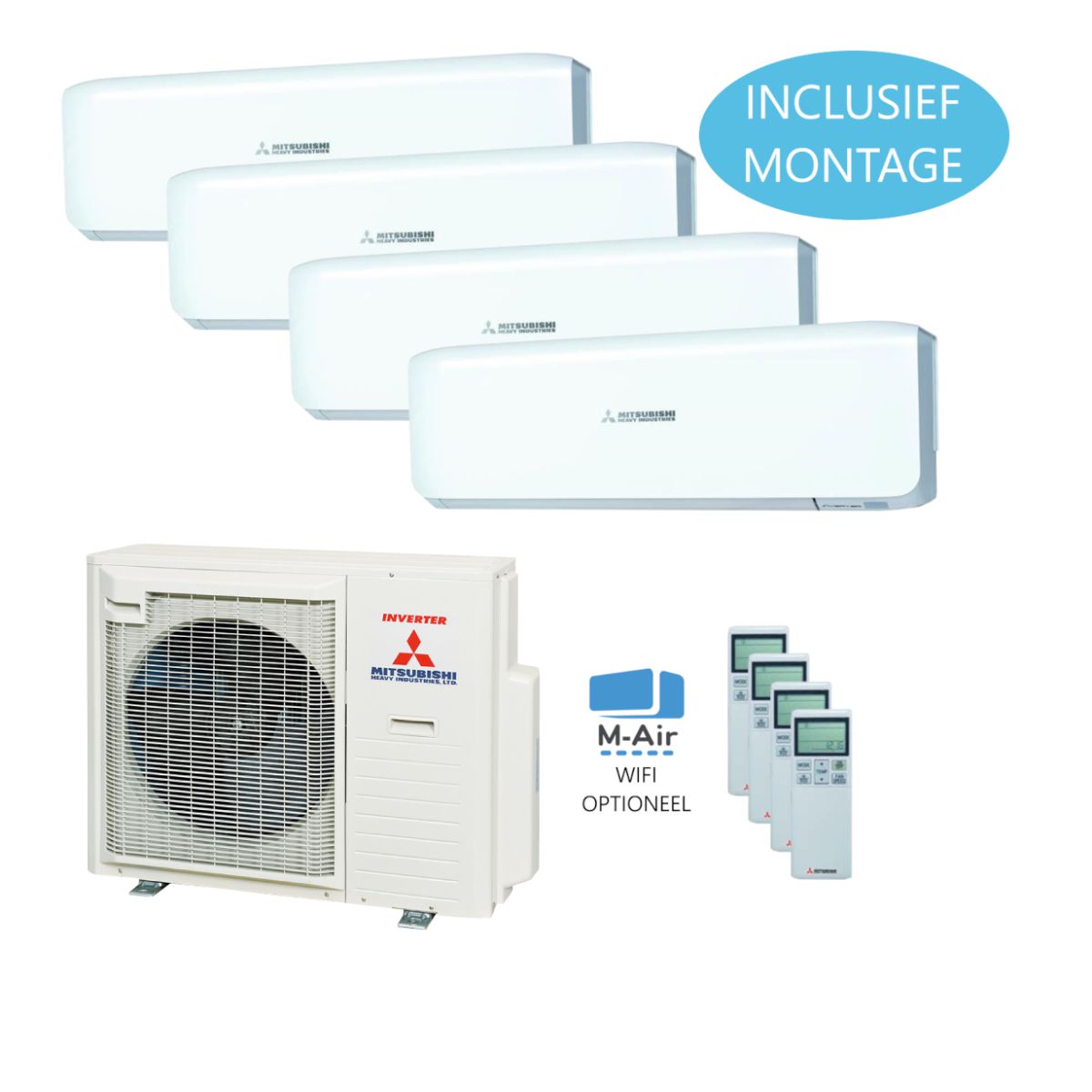 Deze Mitsubishi multi-split airconditioningset wordt geleverd inclusief onze uitgebreide standaard montage. Het systeem is ideaal voor het gelijktijdig koelen en verwarmen van vier afzonderlijke ruimtes en wordt vaak toegepast in woningen waar meerdere slaapkamers gecombineerd worden met een grotere leefruimte, zoals een ruime woonkamer.